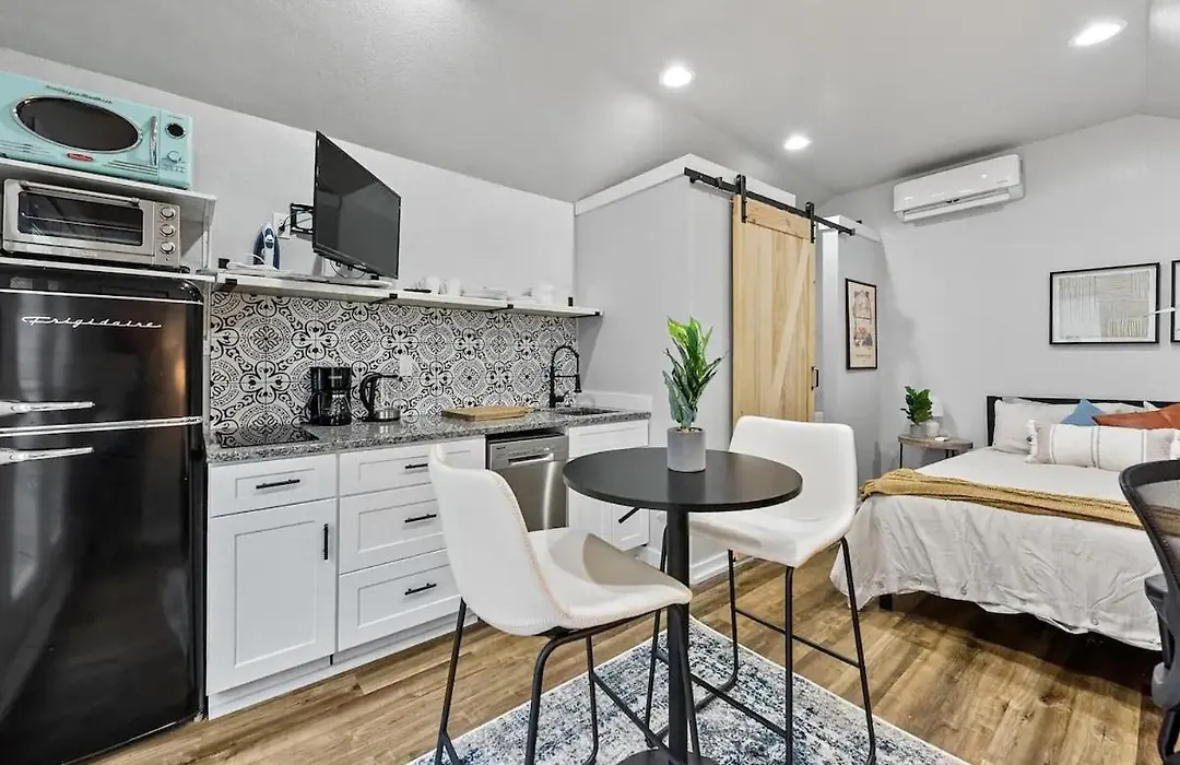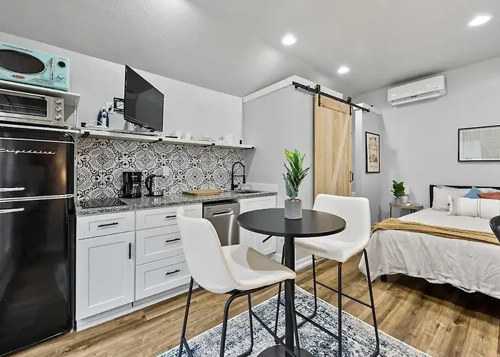 Ao se alojar na pousada Tiny House With Private Outdoor Space Location, os hóspedes podem utilizar as comodidades de autoatendimento disponíveis, incluindo máquina de café/chá, refrigerador e utensílios de cozinha. As especialidades da cozinha Mexicaanse são servidas no El Taco Veloz, localizado a poucos quarteirões desta acomodação de Denver. As opções de transporte na área também incluem o aeroporto em Denver Internacional, situado a 34 minutos de carro.